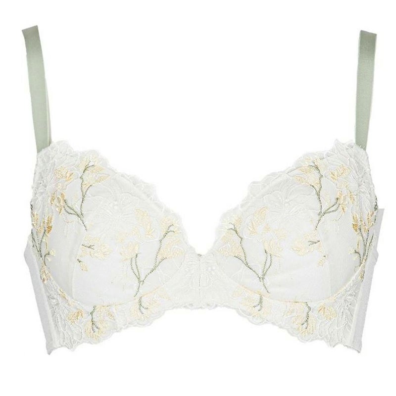 ワイヤーの中心を低くし、V字カット設計にすることでワイヤーの不快感を軽減しました。カップ形状はまんまるシルエットになるように改良しました。バストの丸みに沿って優しく包み込み女性らしいシルエットに整えます。また、カップ裏のクッションとWパワーネットがバストへのフィット感を高め、綺麗な谷間をメイクします。