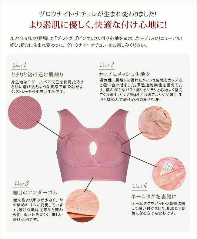 バストを守る為のクロス構造の働きにより、 就寝中でもバストを中央へ誘導し バストをしっかりとホールドします。 バストトップが透けないよう ややサポート力のあるPAD素材を内蔵しています。